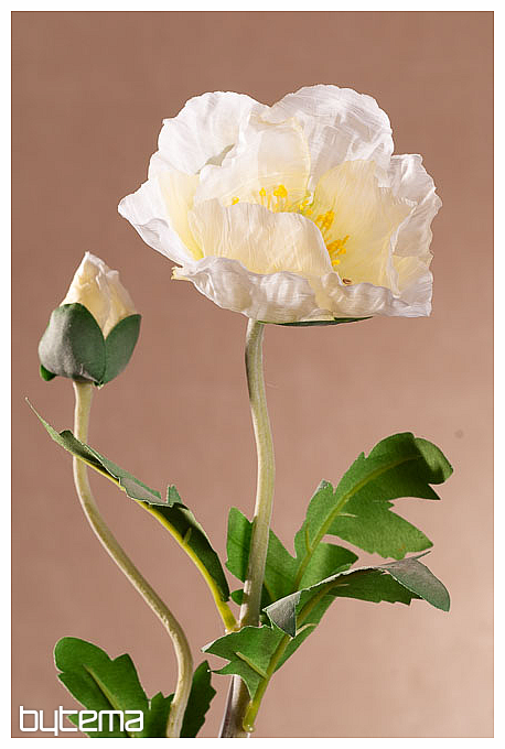 Un pavot à fleur blanche et à bouton unique. Plusieurs feuilles ornent sa tige de 69 cm de long. Du fait de sa transformation, on pourrait facilement le confondre avec un vrai pavot poussant dans les prairies et les champs.
