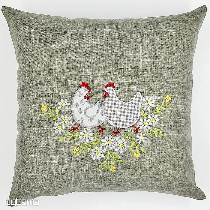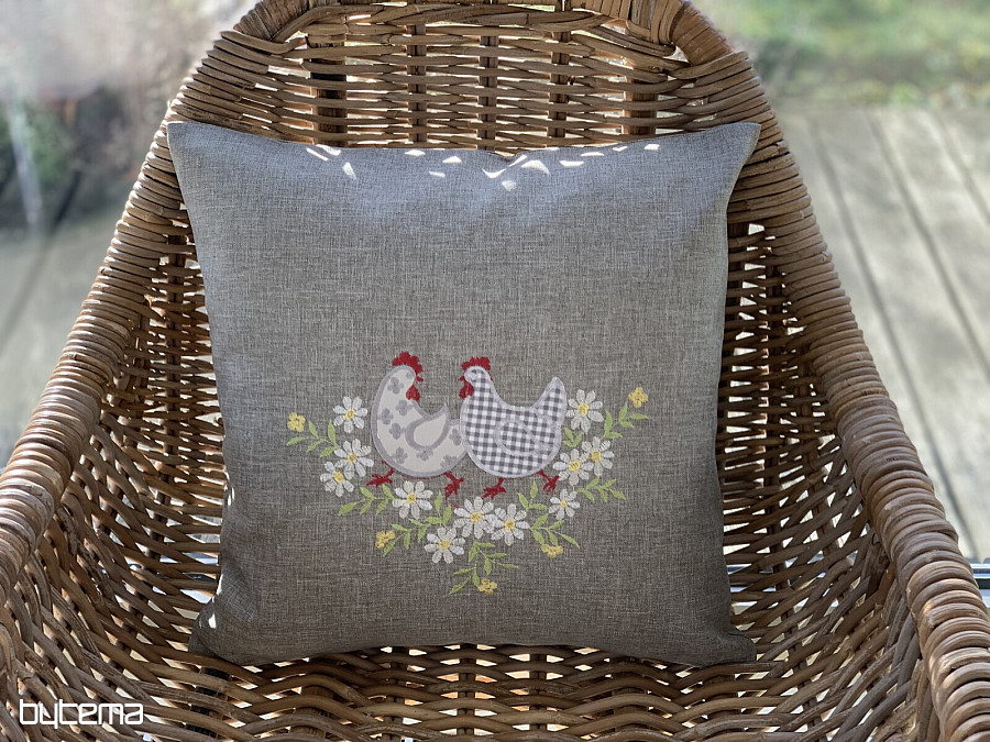 Taie d'oreiller brodée avec un motif de Pâques et des fleurs printanières.