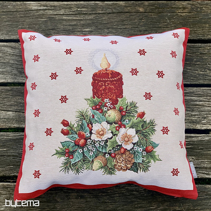 Une taie d'oreiller en tapisserie de Noël avec une belle bougie allumée apportera la chaleur des fêtes à votre maison.