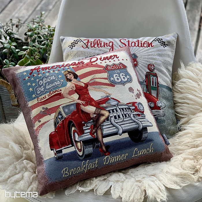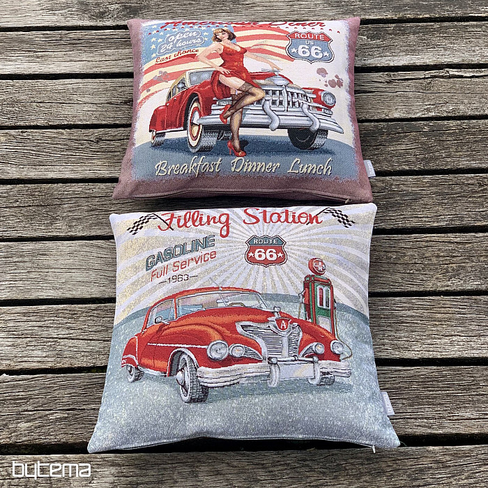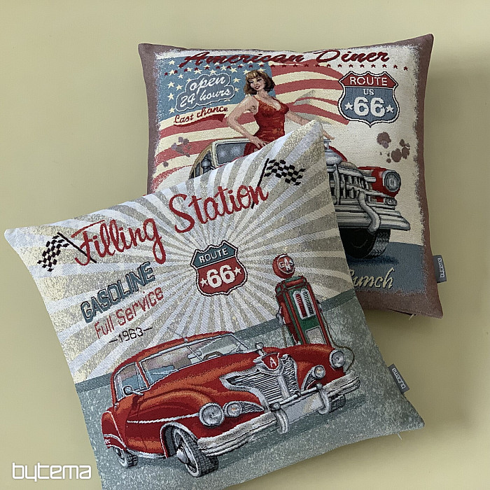 Nous avons préparé cette collection pour tous les amateurs de rétro, d'automobile et de motards. Les coussins en tapisserie au motif de la célèbre et emblématique Route 66 reliant les côtes Est et Ouest des USA seront vos compagnons au quotidien. Les housses de coussin en tapisserie ont une taille de 45x45 cm, motif double face.