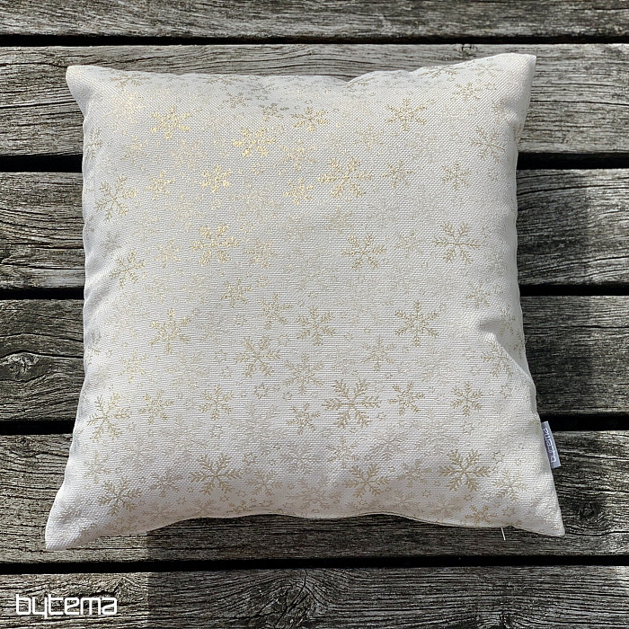 Les housses décoratives de Noël avec un design de beaux grands et petits flocons de neige dorés sur un fond crème seront une décoration magique dans votre maison.