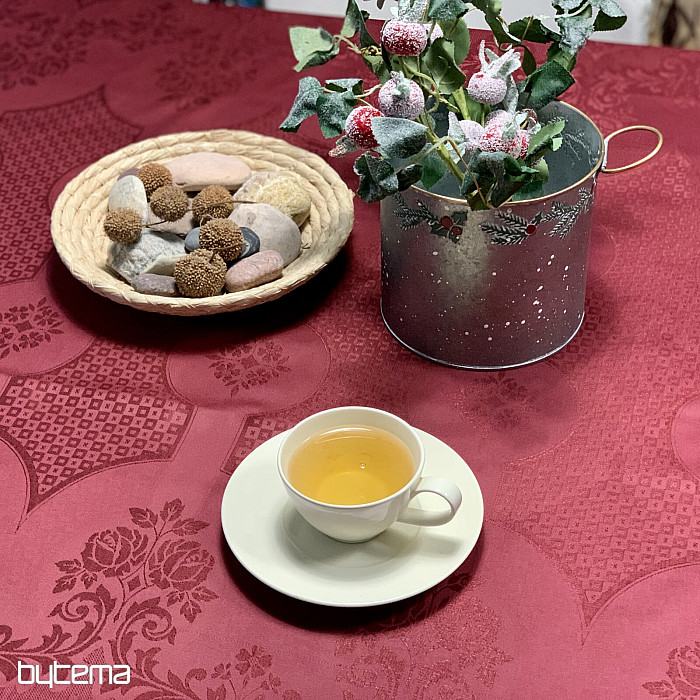Le damas apporte une touche de luxe ; en bordeaux, il insufflera à votre intérieur la chaleur d'une ambiance familiale.