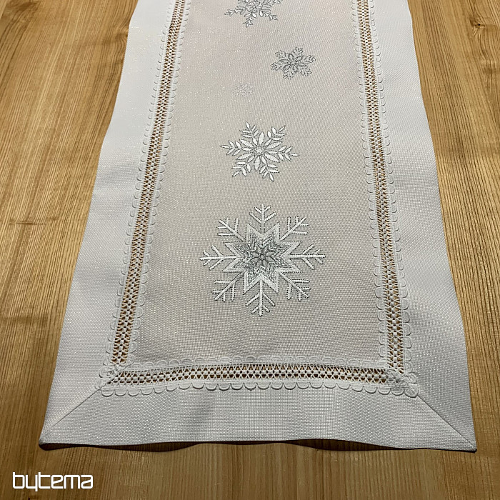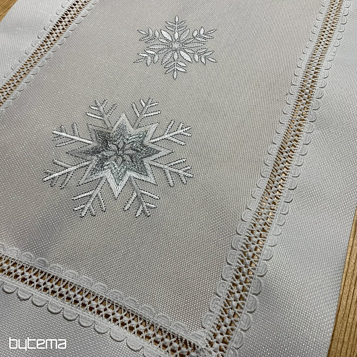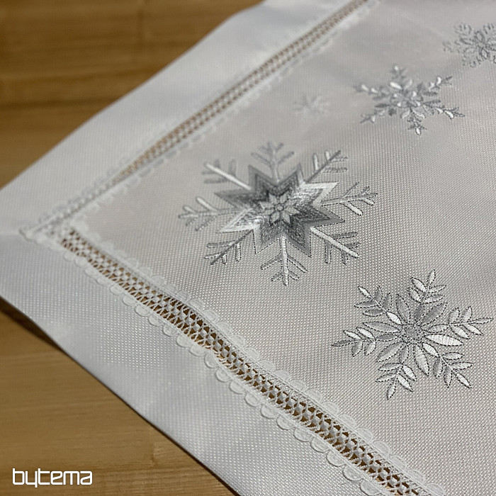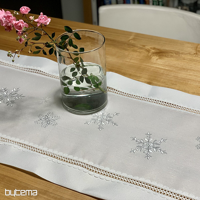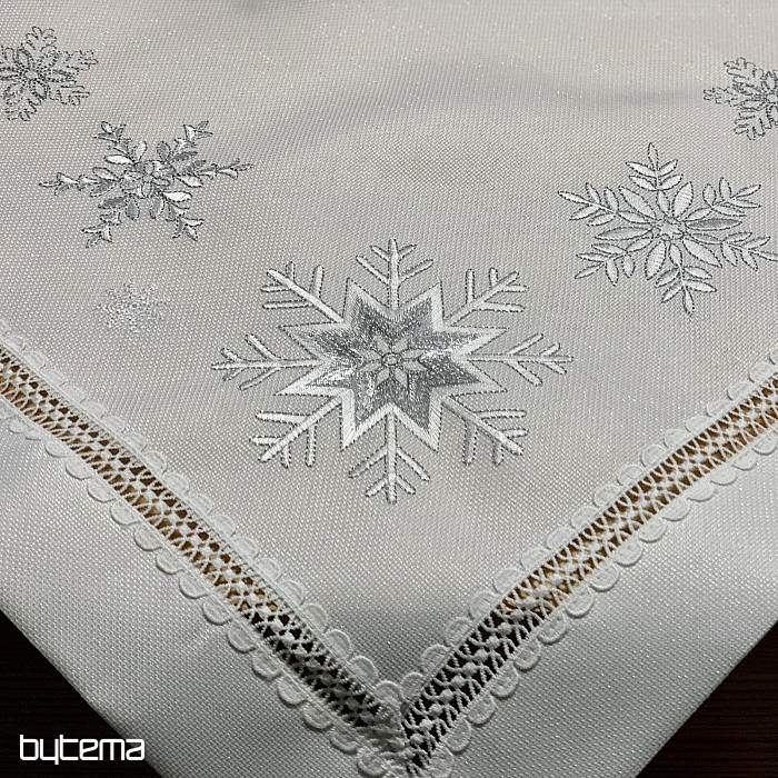 La perfection de Noël, sous la forme d'une nappe blanche ornée de flocons de neige argentés brodés, décorera votre table à manger pendant toutes les fêtes.