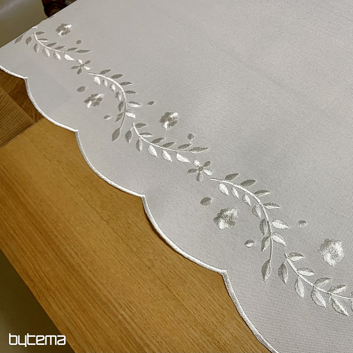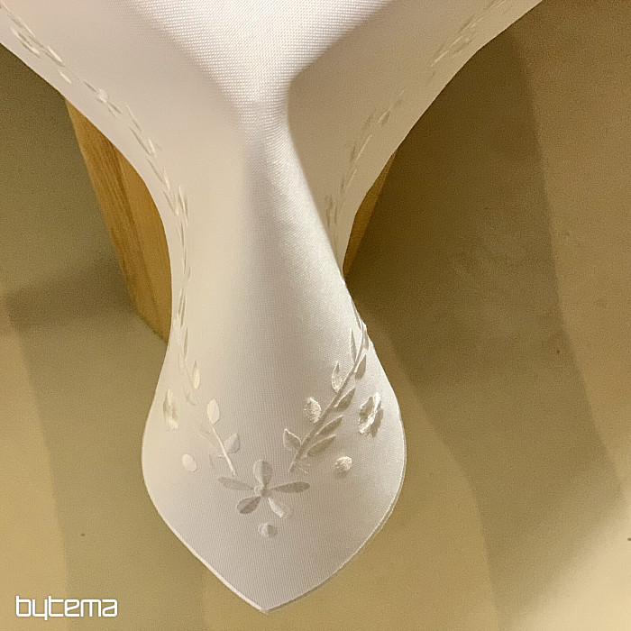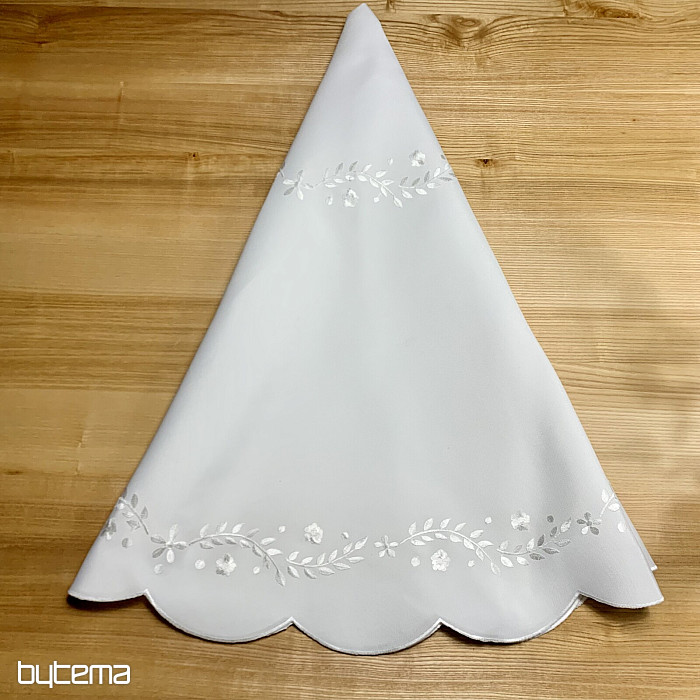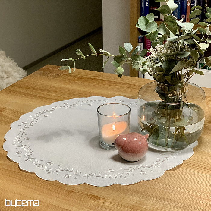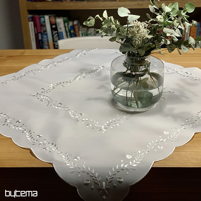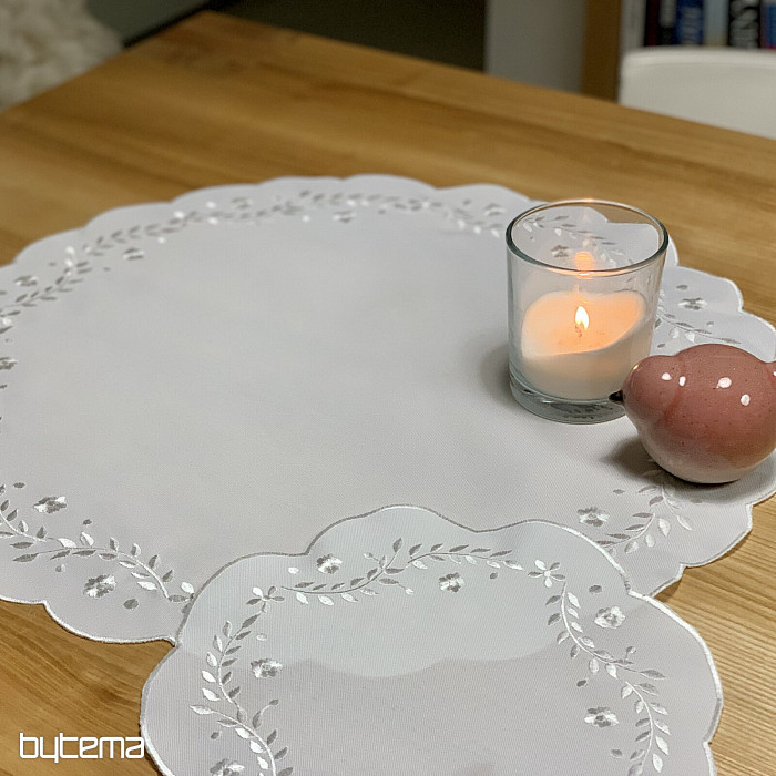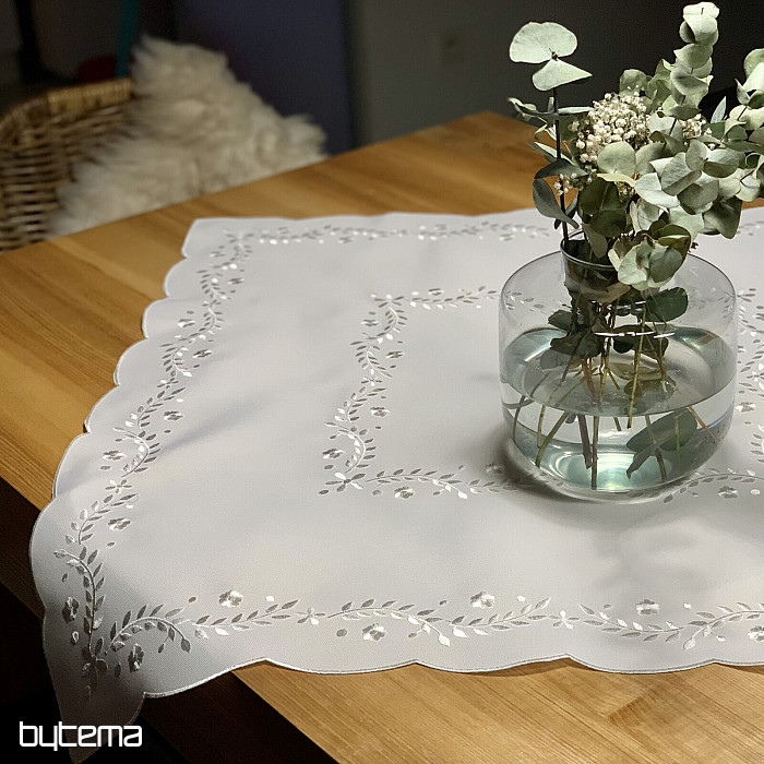 Une nappe délicate brodée de motifs ajourés, idéale pour les occasions festives.