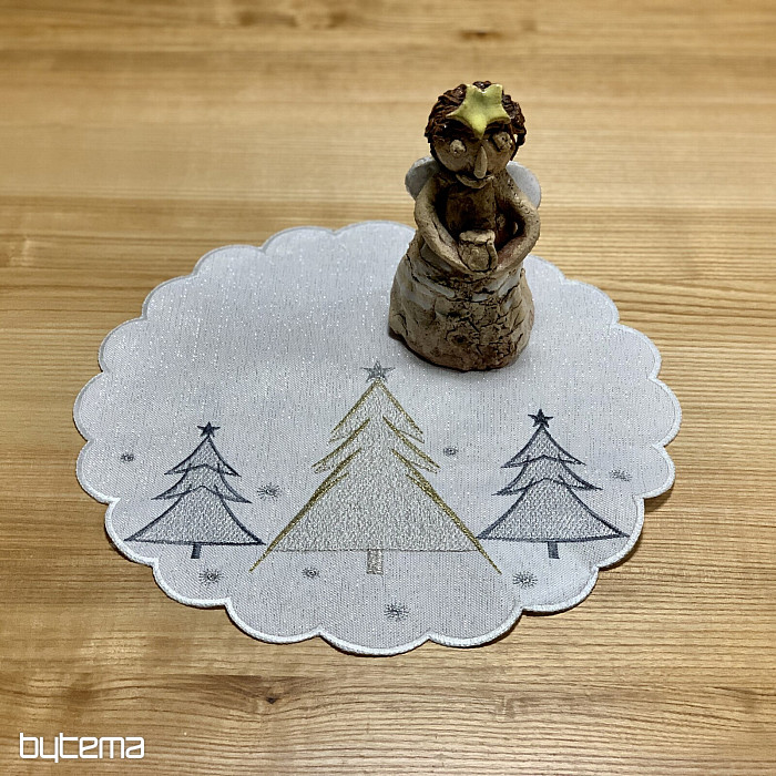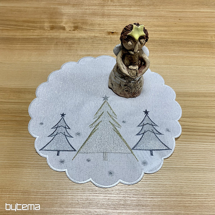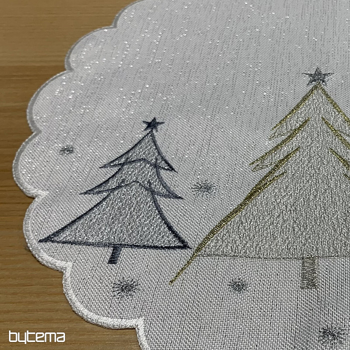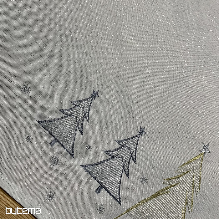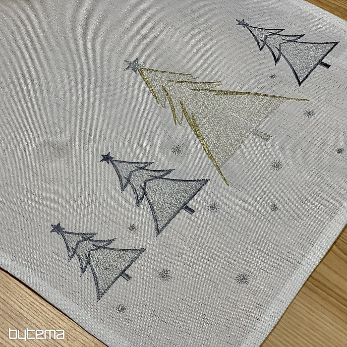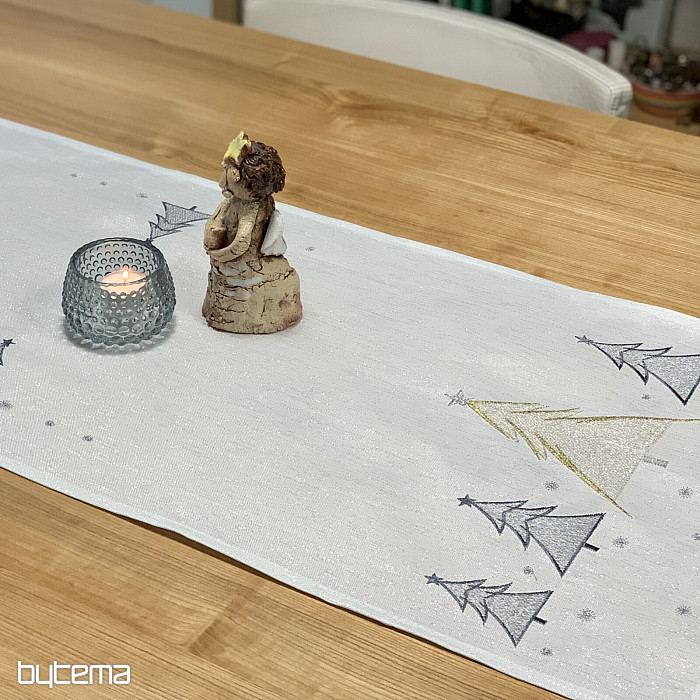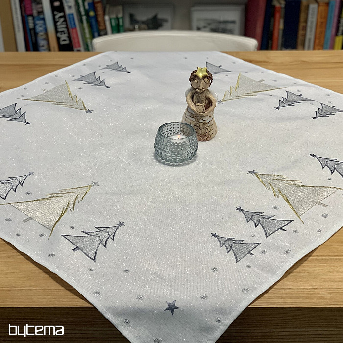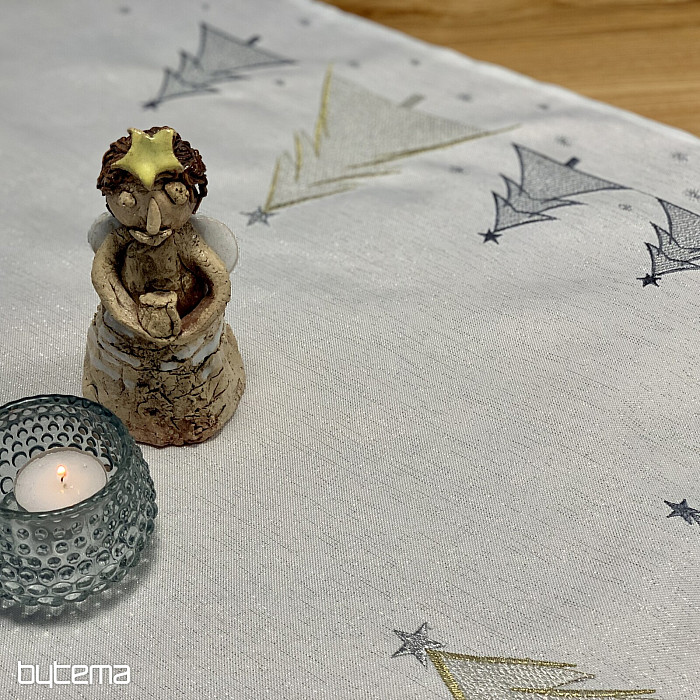 Une nappe et une écharpe de Noël brodées avec goût et délicatesse, ornées de sapins bicolores, apporteront une touche de charme à votre intérieur.