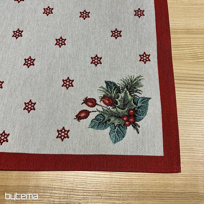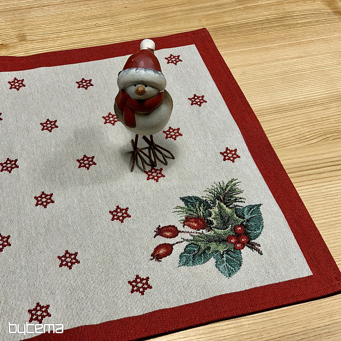 Une nappe en tapisserie avec un motif de bougie de Noël créera une belle ambiance de Noël dans votre maison.