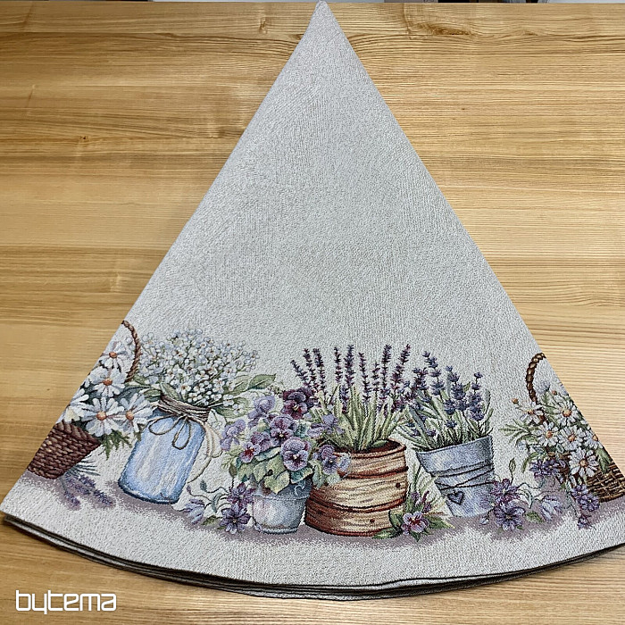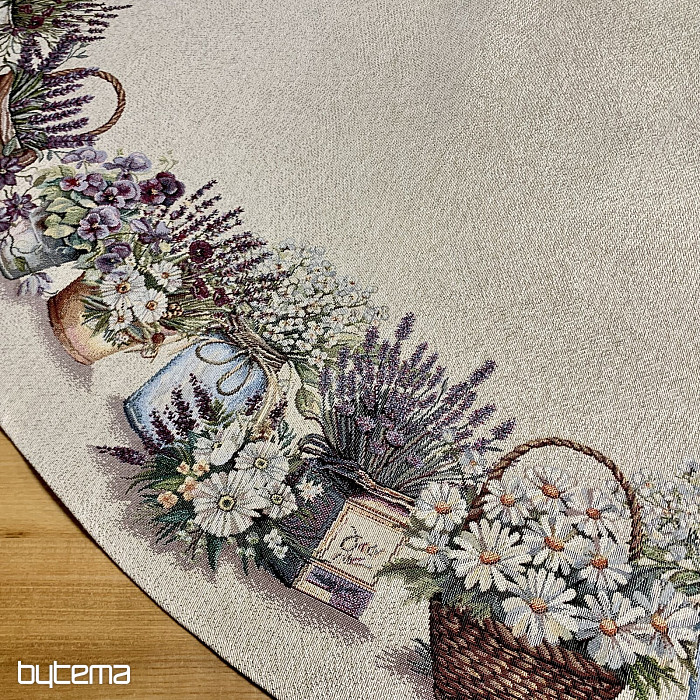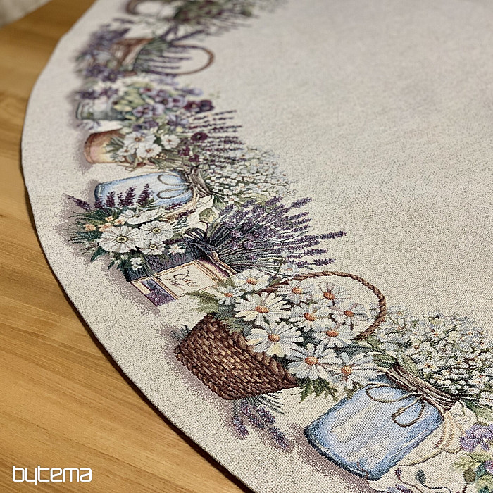 Une magnifique nappe ronde en tapisserie unie ornée de fleurs qui embellira votre intérieur.
