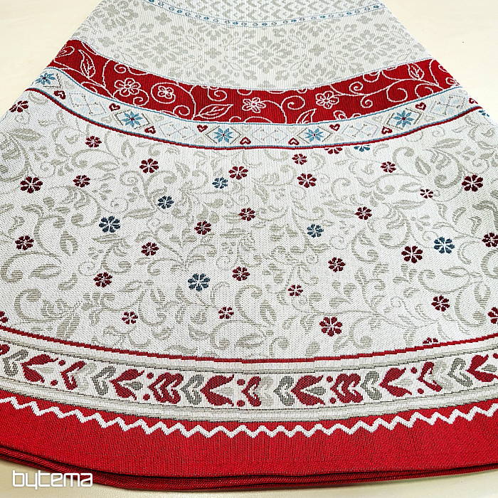 Magnifique nappe décorative en tapisserie pour une table ronde. L'accessoire parfait pour votre chalet.
