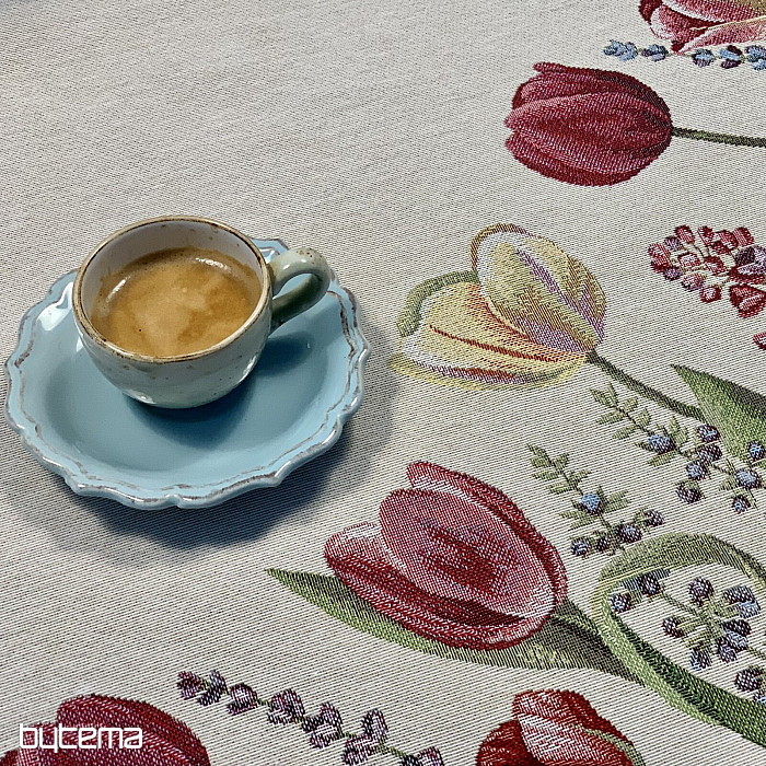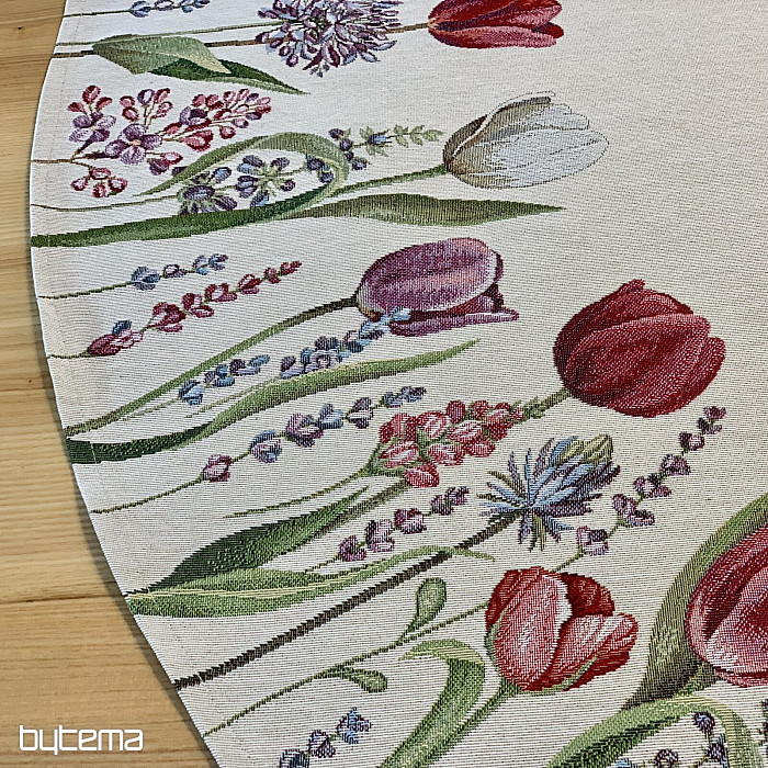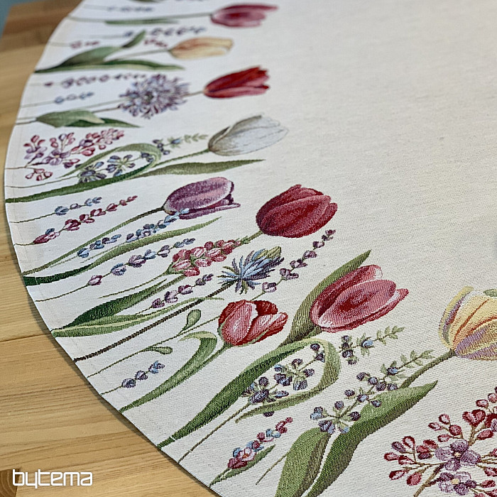 Le motif de tulipes printanières de cette nappe tapisserie est magique. Votre salle à manger sera en pleine floraison.