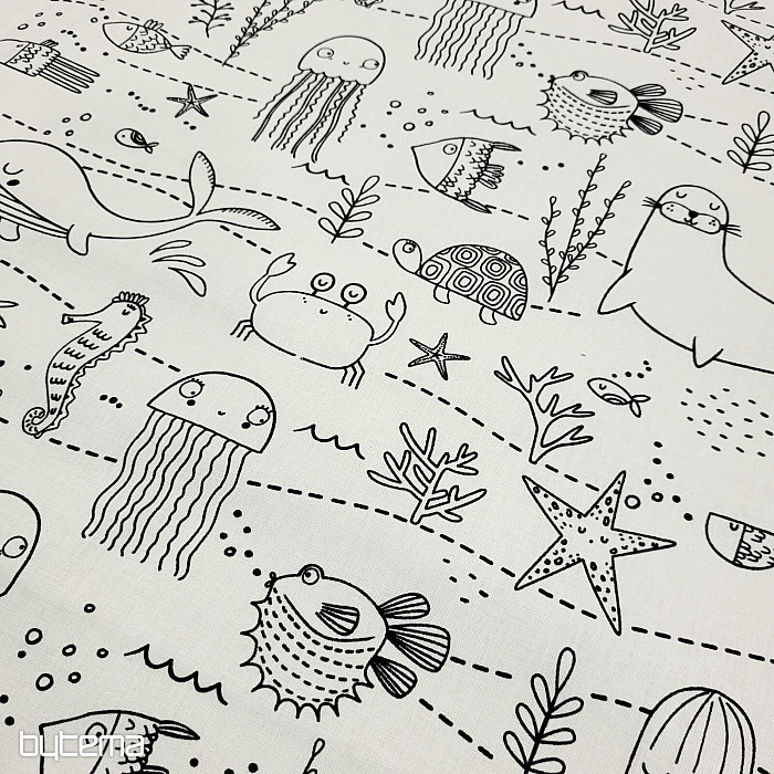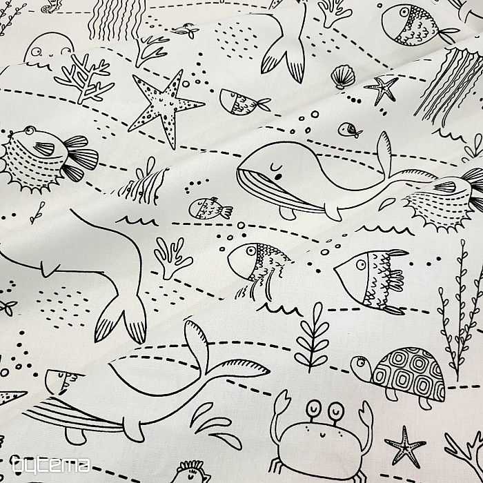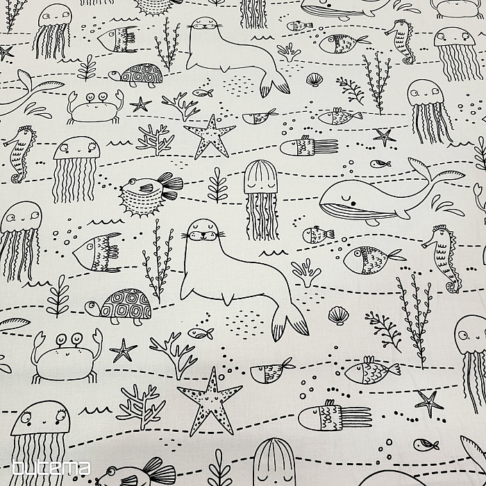 Tissu à motifs d'animaux sous-marins que les enfants peuvent colorier eux-mêmes selon leur imagination.