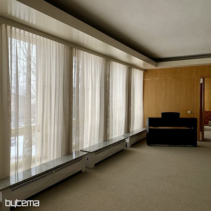 Les représentants du village de Lešná nous ont commandé des rideaux et une nappe de fête avec une jupe pour la salle de cérémonie. Le rideau ou…
