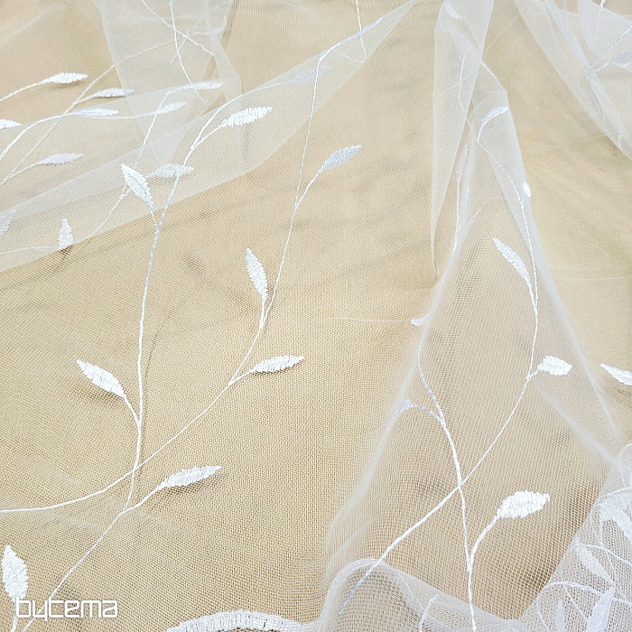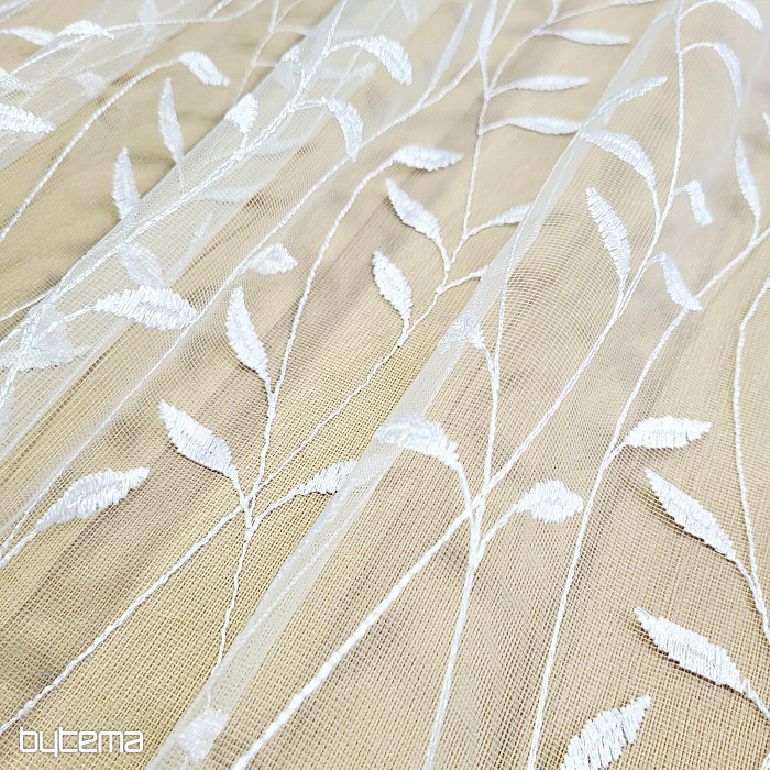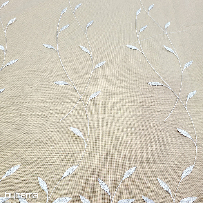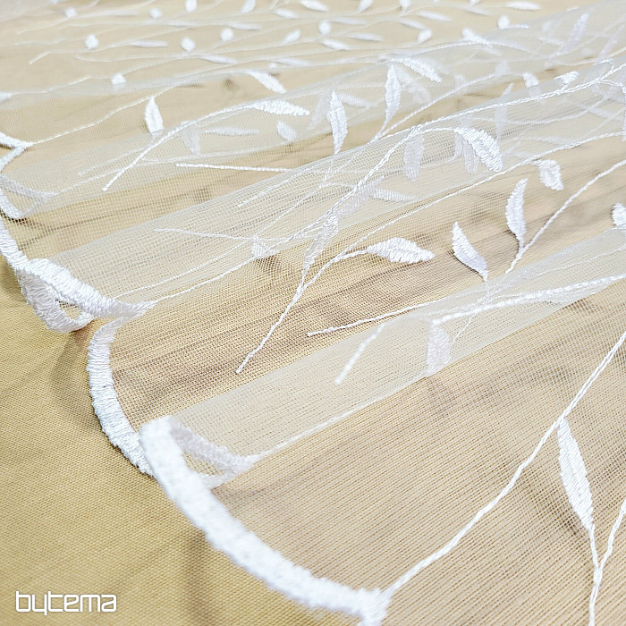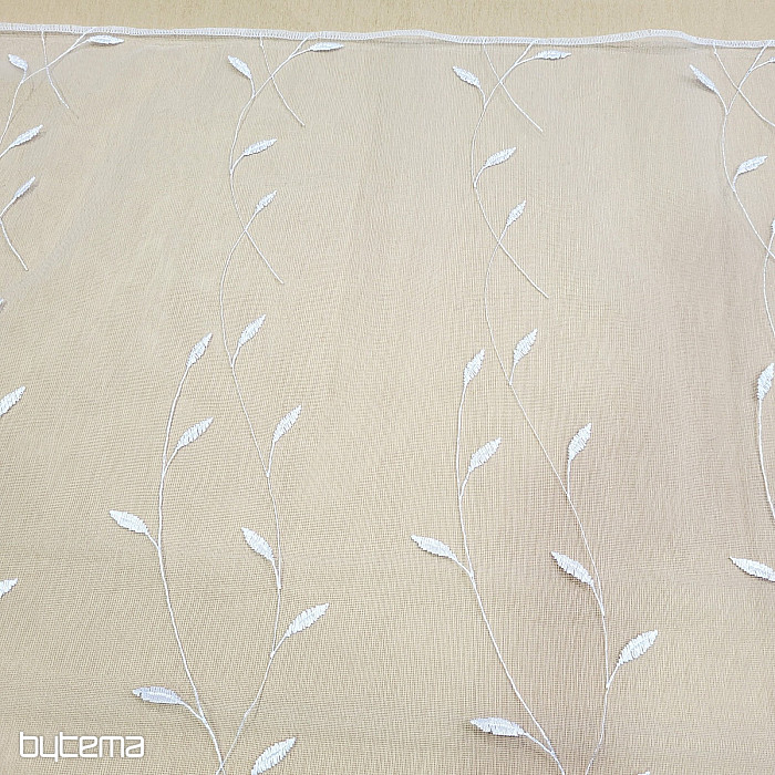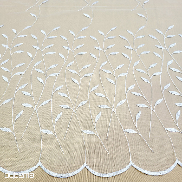 Rideau avec une bordure brodée sur toute la surface, de belles feuilles délicates et discrètes.