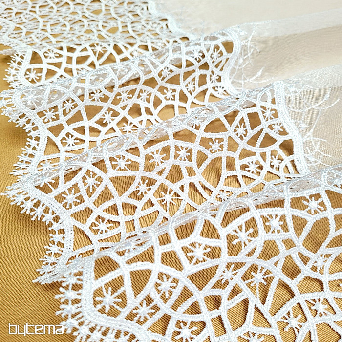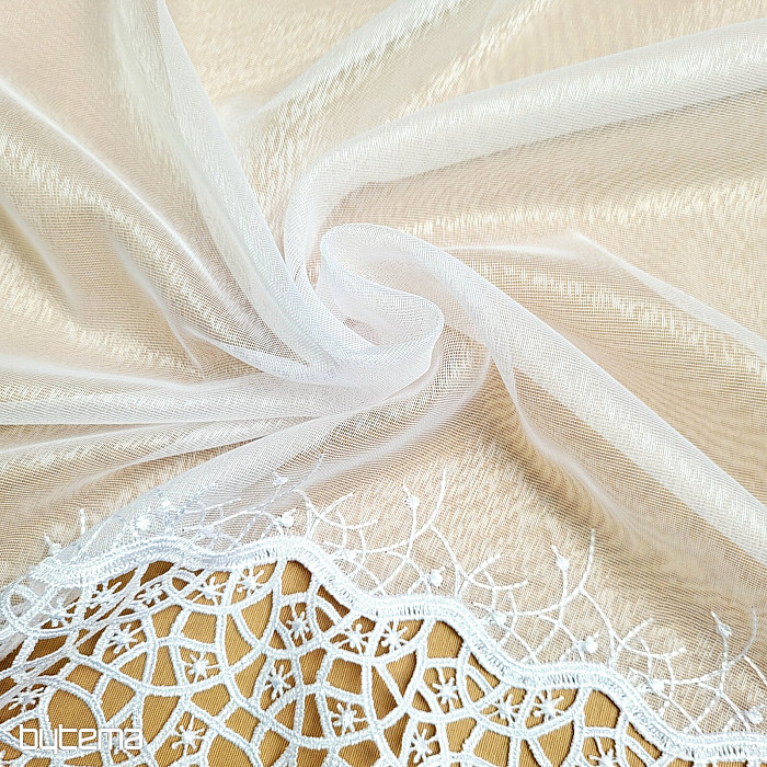 Rideau décoratif luxueux avec une belle bordure du fabricant allemand GERSTER dans un design très moderne et un look intemporel.
