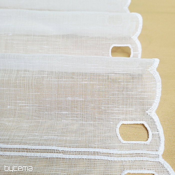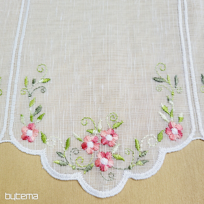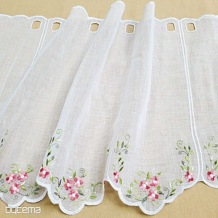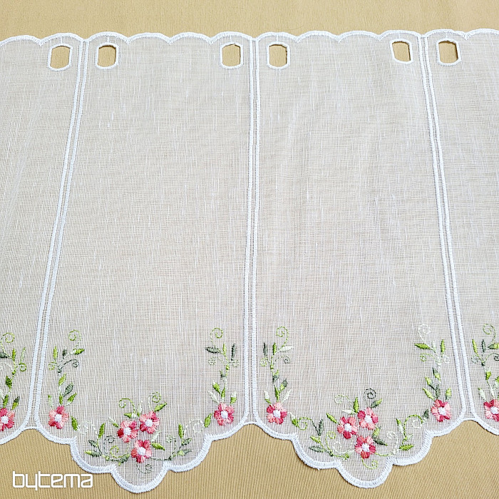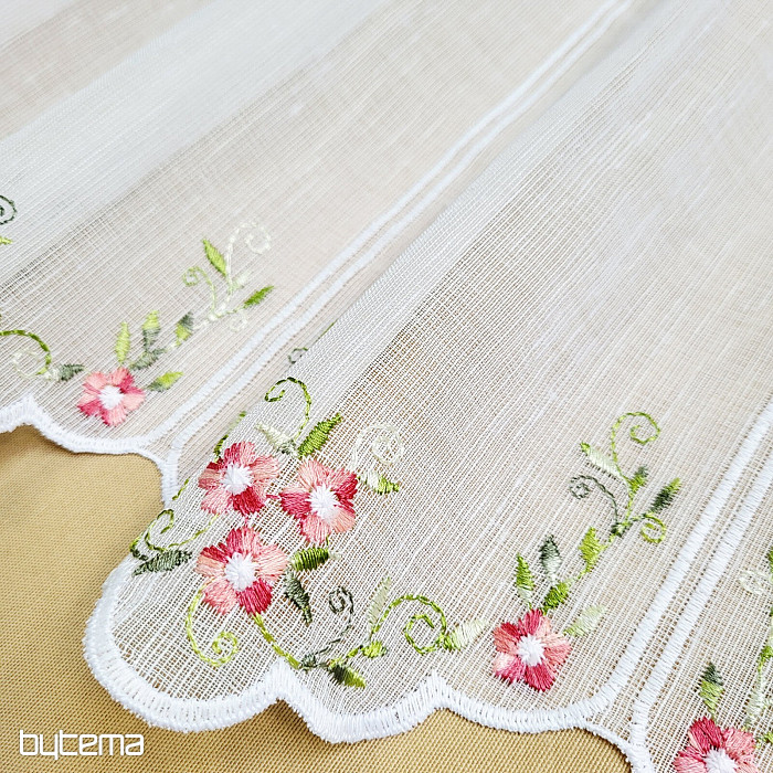 Nous proposons ce rideau en trois hauteurs différentes. En 60 cm et 90 cm de hauteur, il est orné d'une fleur brodée au centre du panneau.
