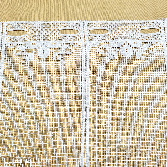 Magnifique rideau vintage à motif floral. Son aspect crocheté le rend idéal pour les chalets en bois et les maisons de campagne.
