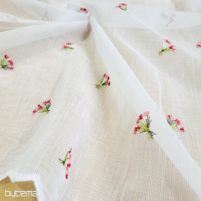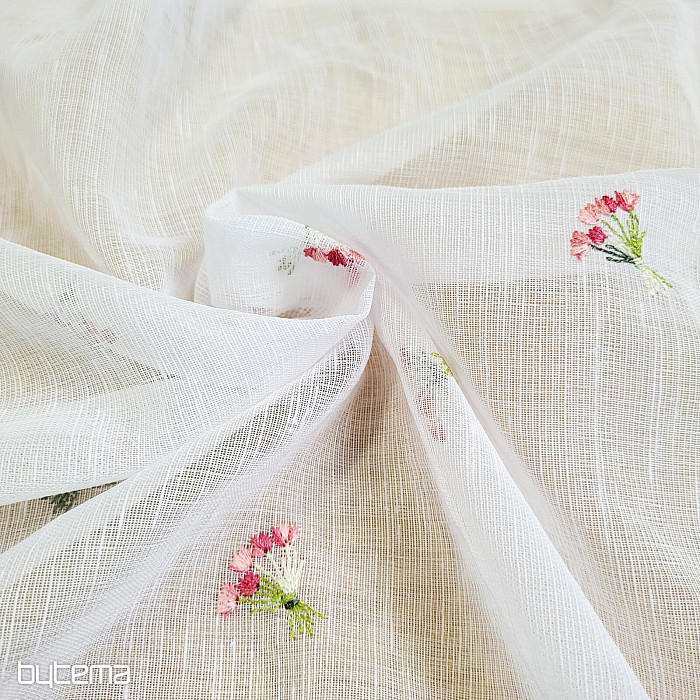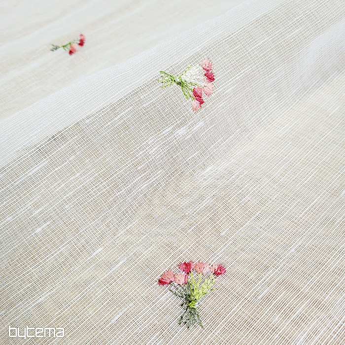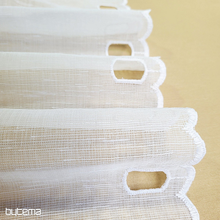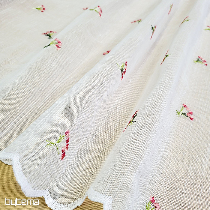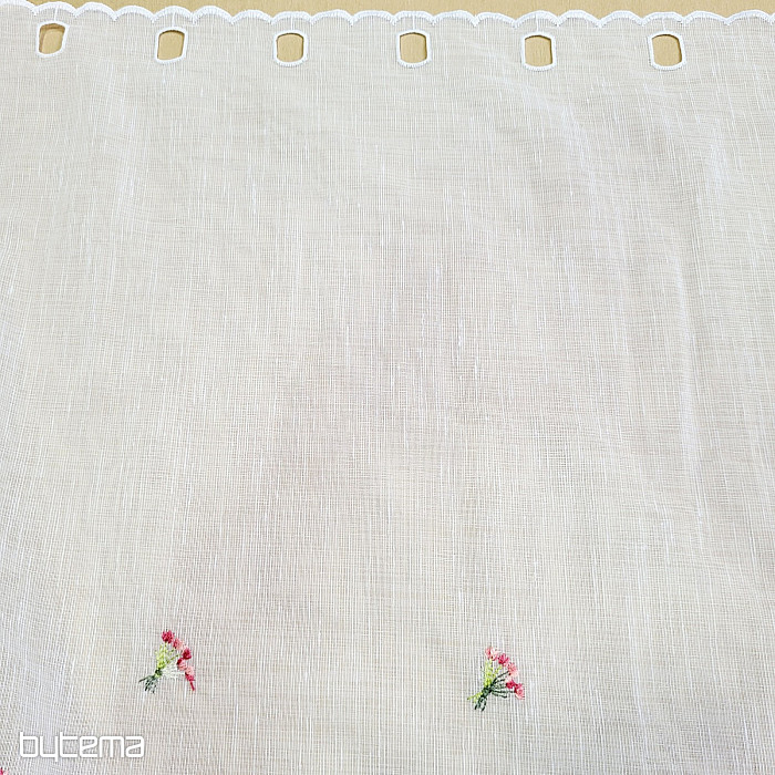 Nous proposons ce rideau en trois hauteurs différentes. En 60 cm et 90 cm de hauteur, il est orné d'une fleur brodée au centre du panneau.