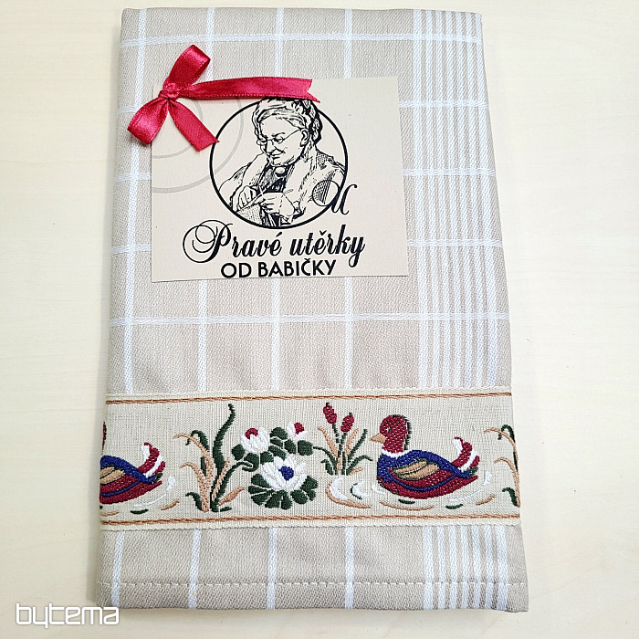 Torchons en coton doux à carreaux et ourlet à motif de canard sauvage. Une décoration raffinée et délicate pour votre cuisine.