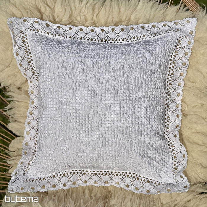 Taie d'oreiller décorative DENTELLE FLEURS blanches - 40 x 40 cm