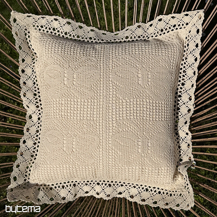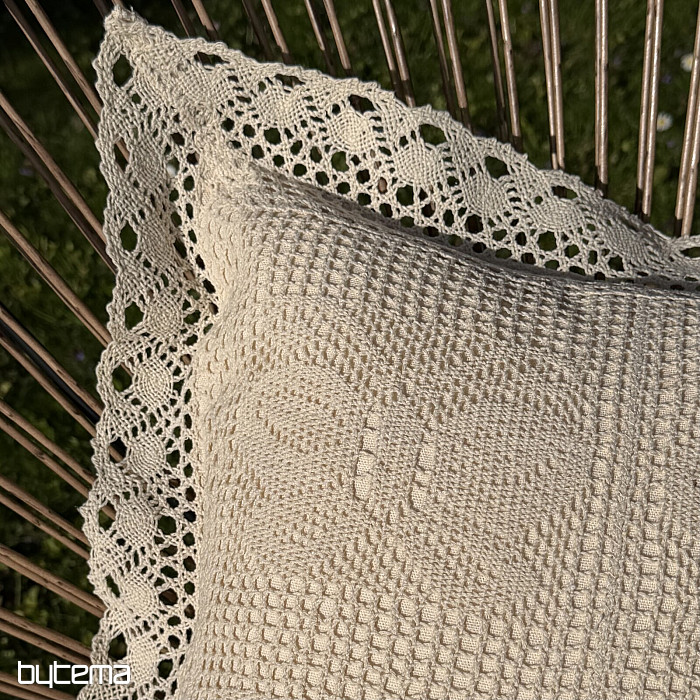 Housses de coussin en dentelle beige à motif discret, parfaites pour une décoration harmonieuse dans un style cottage ou champêtre.