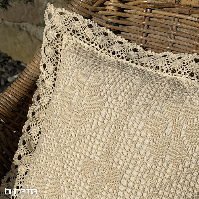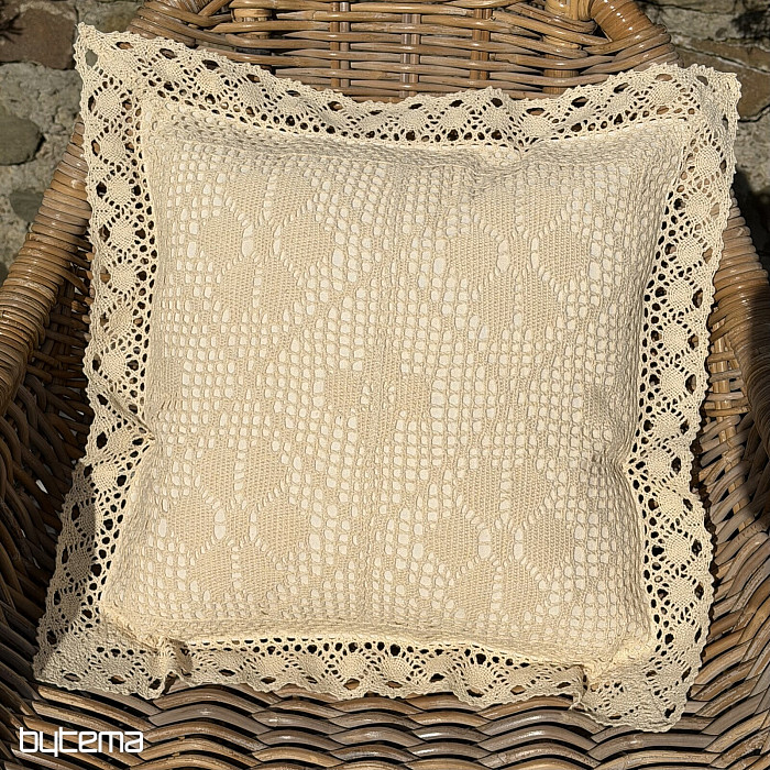 Housses de coussin en dentelle beige à motif discret, parfaites pour une décoration harmonieuse dans un style cottage ou champêtre.