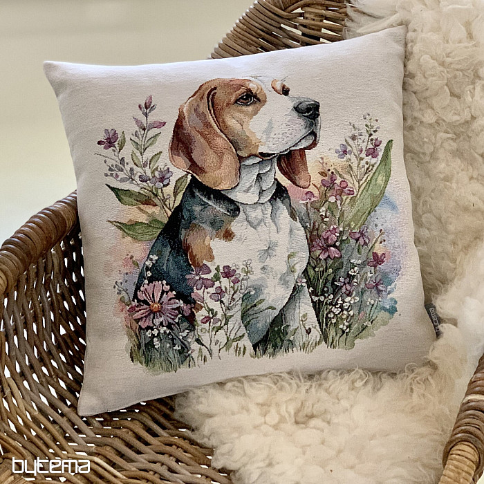 Taie d'oreiller en tapisserie ornée d'un adorable chien. Un cadeau idéal pour les amoureux de cette race, qui vous réchauffera au premier regard.