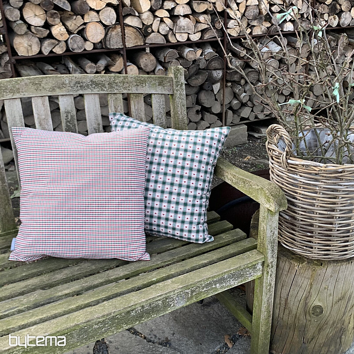 Les taies d'oreiller décoratives à motifs damier et cœur sont parfaites pour les chalets de campagne et les cabanes en rondins.