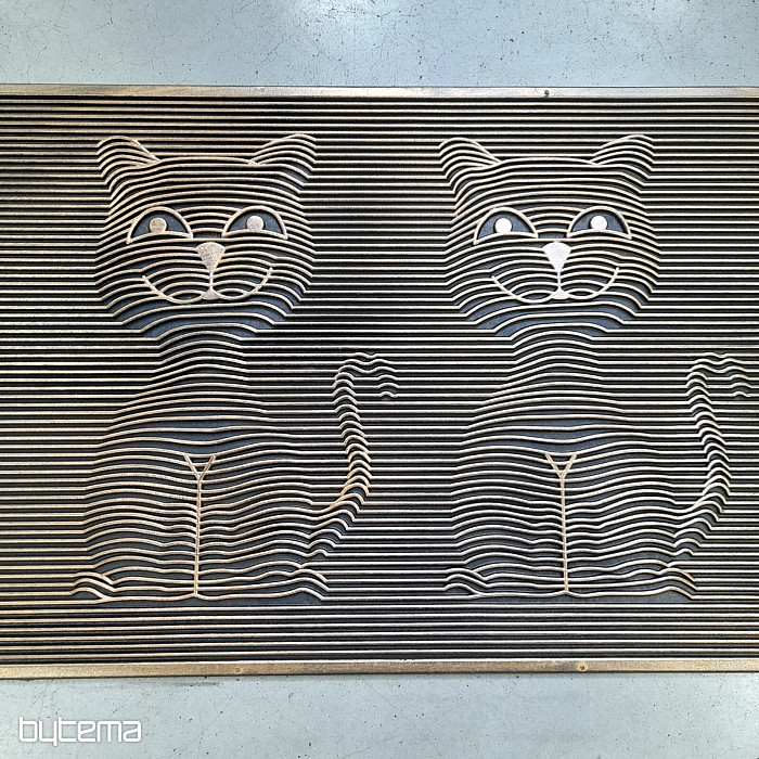 Tapis de porte en caoutchouc joyeux avec deux chats en 3D