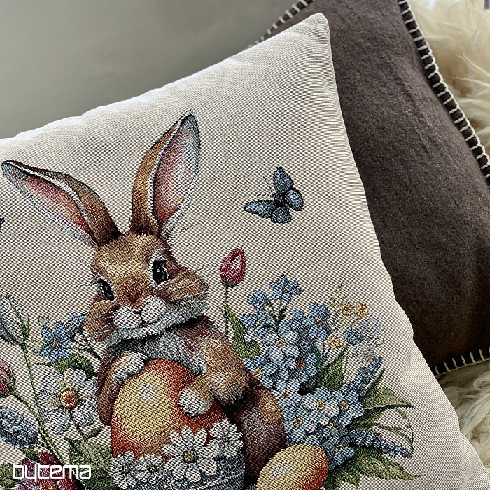 La couverture en tapisserie avec un joli lapin et plein de fleurs printanières vous apportera à coup sûr l'atmosphère de Pâques.