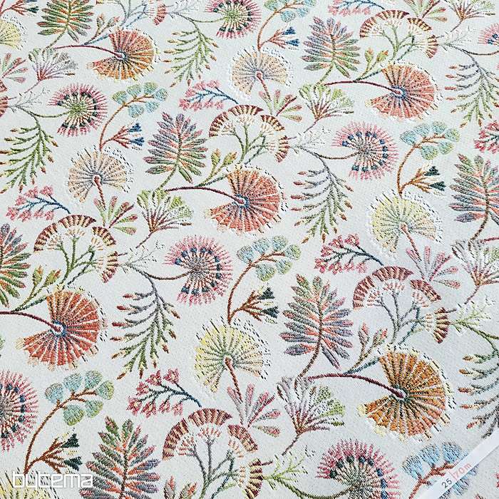 Notre nouveauté en boutique est un tissu de tapisserie à motifs floraux colorés. Ses couleurs subtiles mais éclatantes lui confèrent une grande élégance.