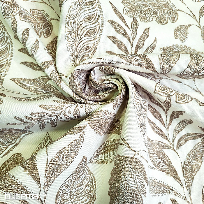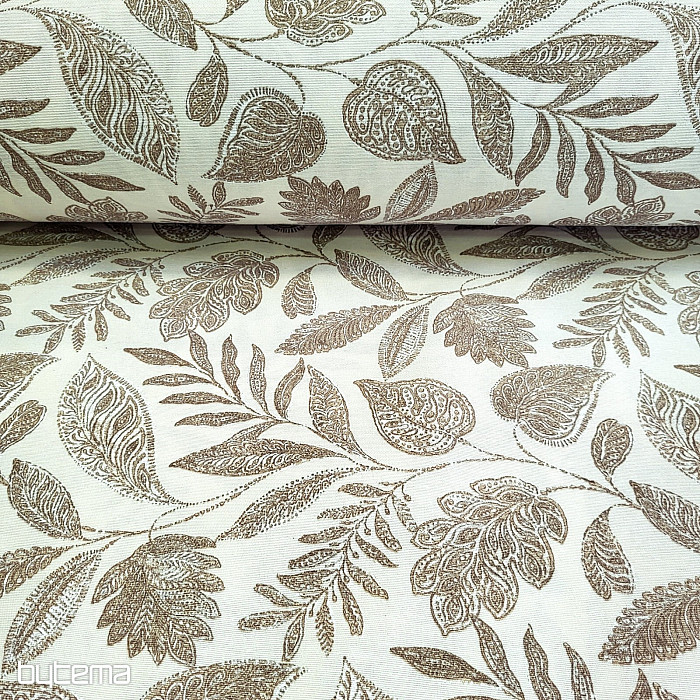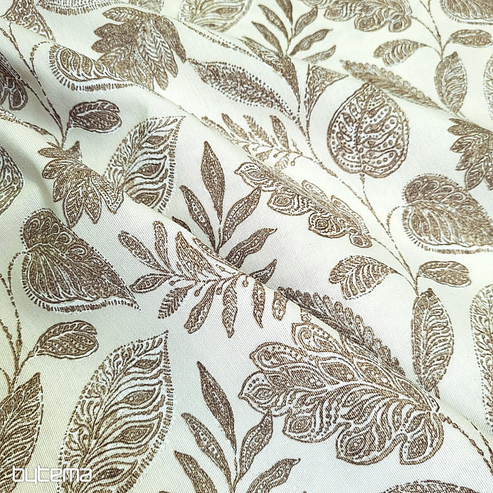 Tissu décoratif à motifs de grandes feuilles de différentes sortes.