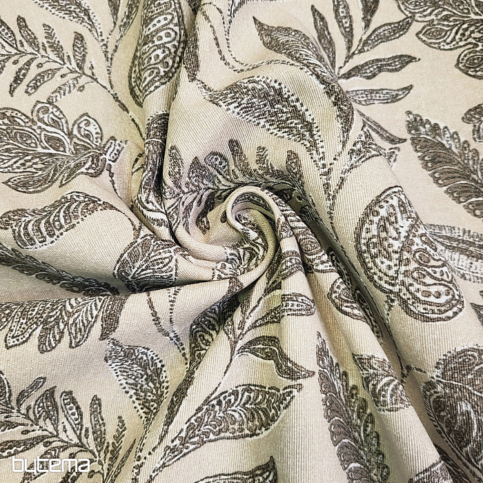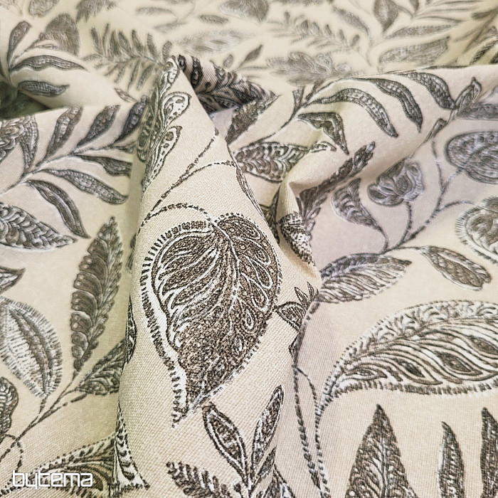 Tissu décoratif à motifs de grandes feuilles de différentes sortes.
