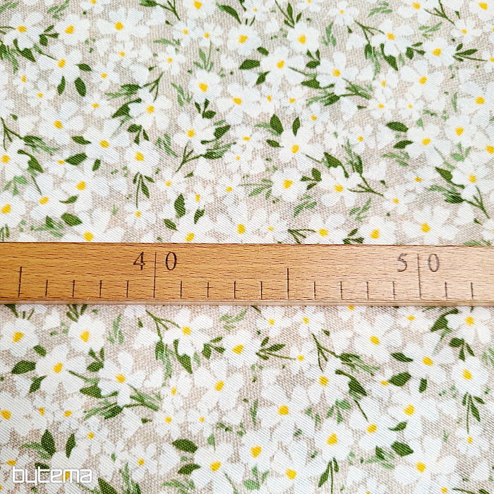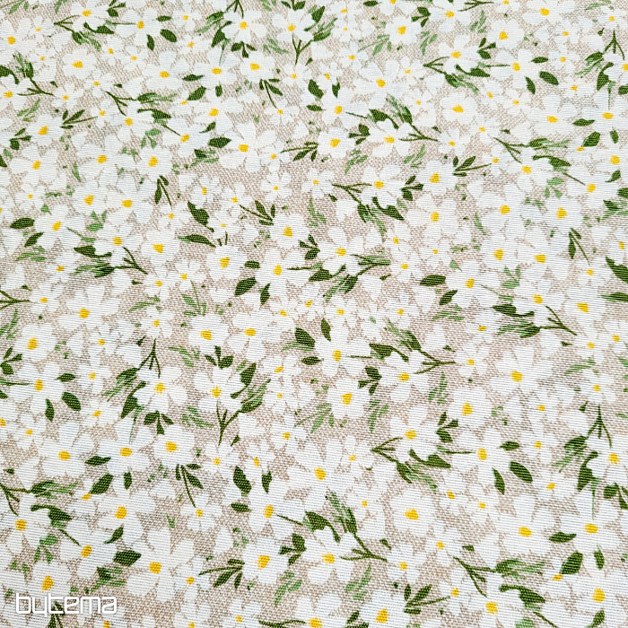 Un tissu décoratif orné de délicates fleurs blanches qui brillent comme des marguerites.