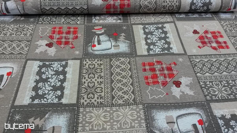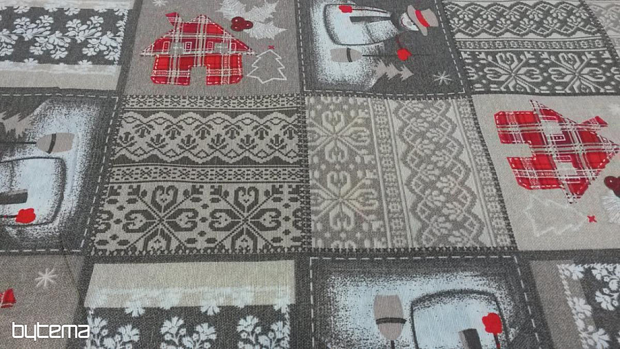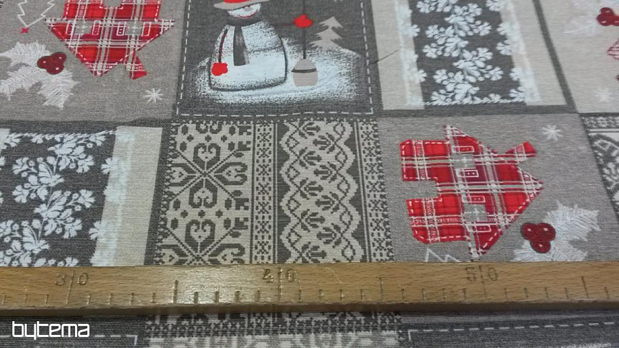 Tissu décoratif de Noël avec des coeurs en trois variantes de couleurs, beau tissu pour les intérieurs de style rustique et campagnard.