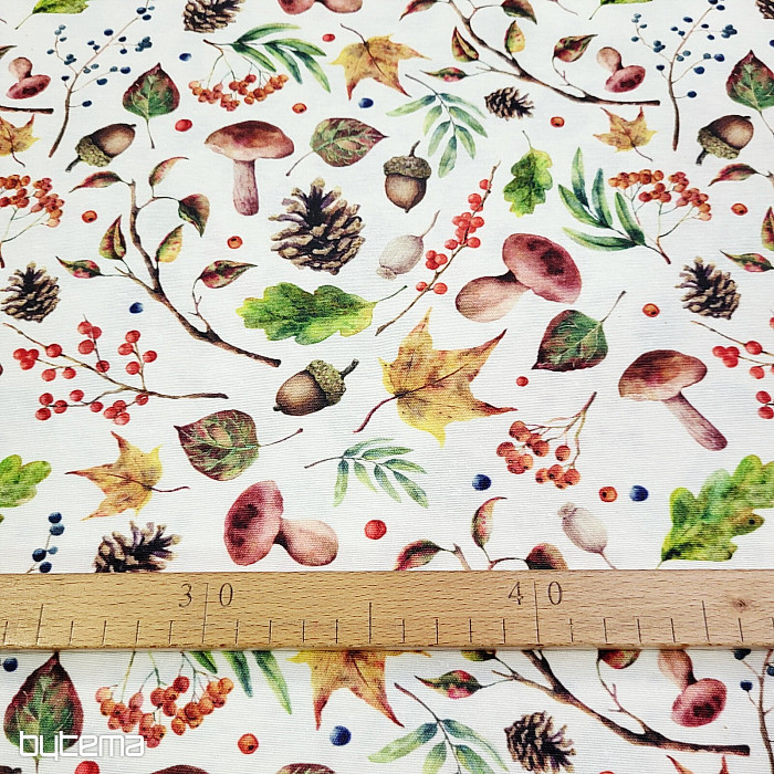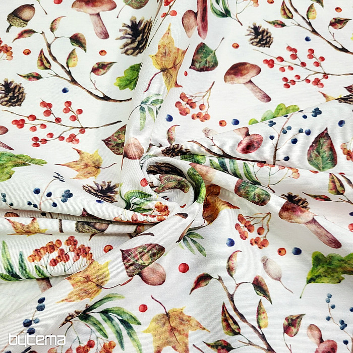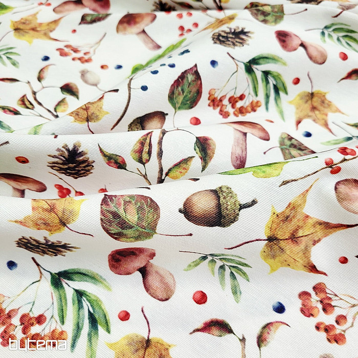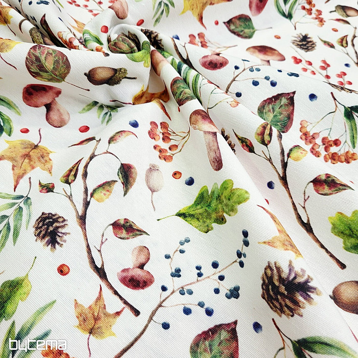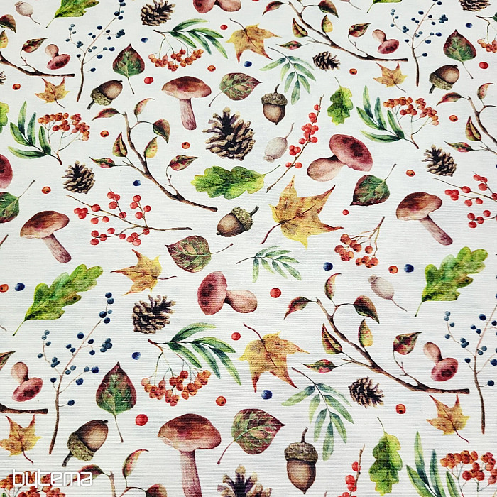 Un tissu décoratif d'automne, orné de baies et de feuilles des bois, ravira le regard de tous les propriétaires de chalets et de maisons.