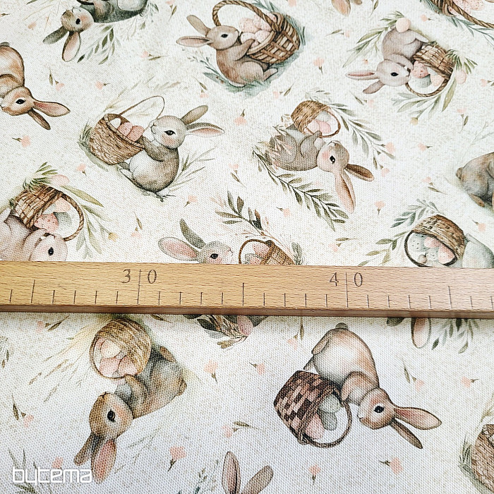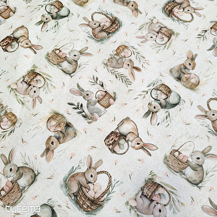 Tissu décoratif de Pâques avec des lapins et des œufs. Une décoration charmante et adorable pour égayer votre intérieur au printemps.