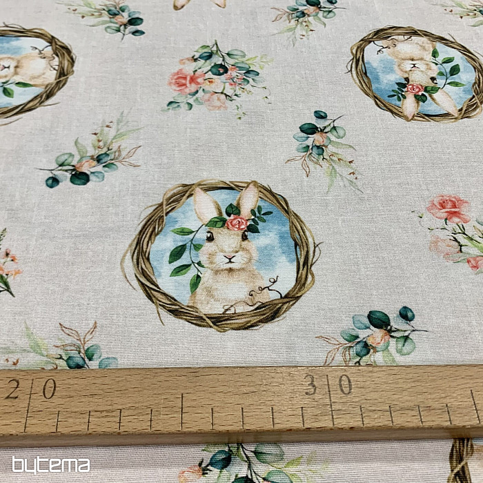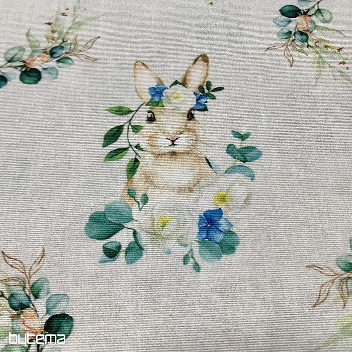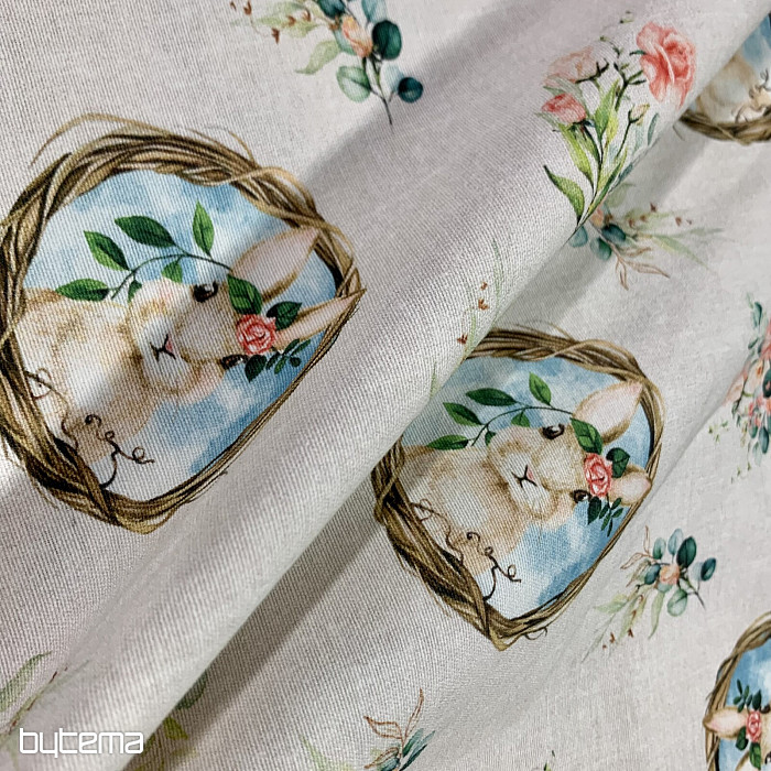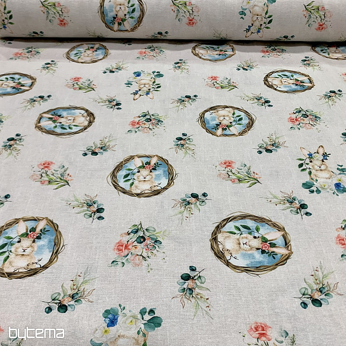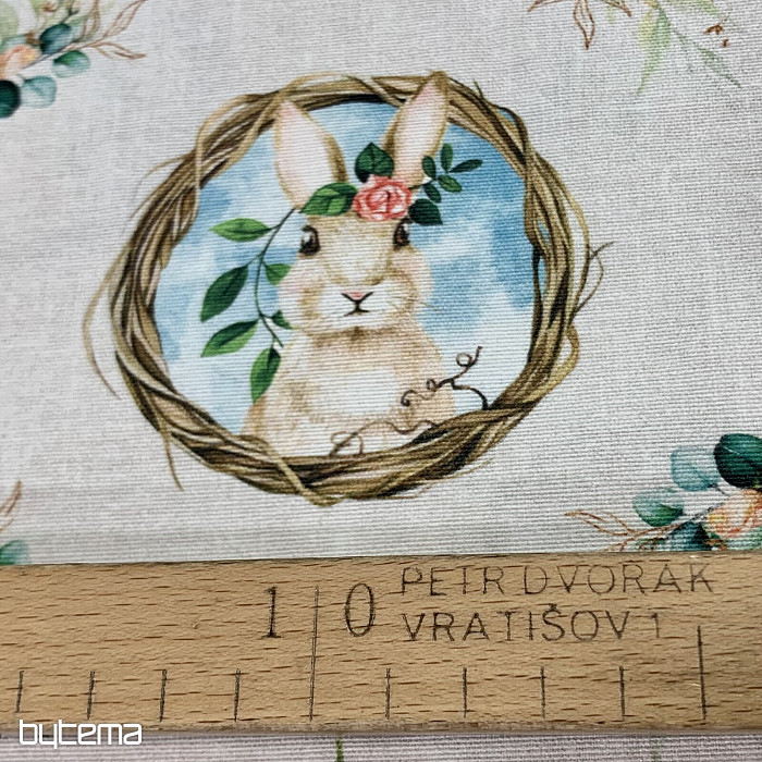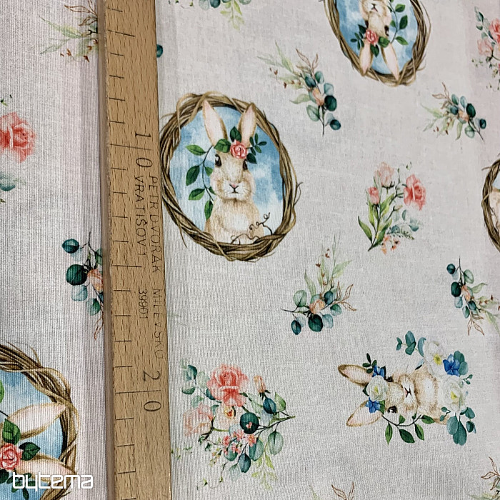 Tissu décoratif lapin de Pâques avec rose - largeur 140 cm