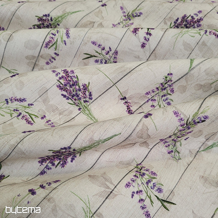 Un magnifique tissu décoratif à motifs de lavande, de style champêtre, vous charmera au premier regard.