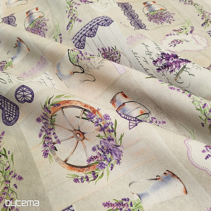 Un magnifique tissu décoratif à motifs de lavande, de style champêtre, vous charmera au premier regard.