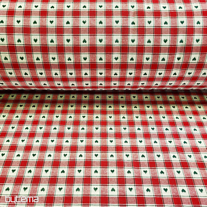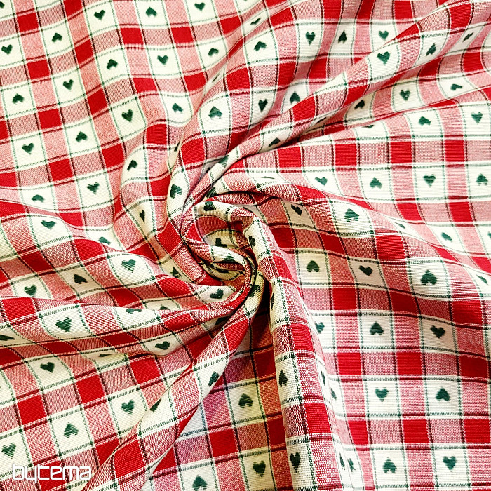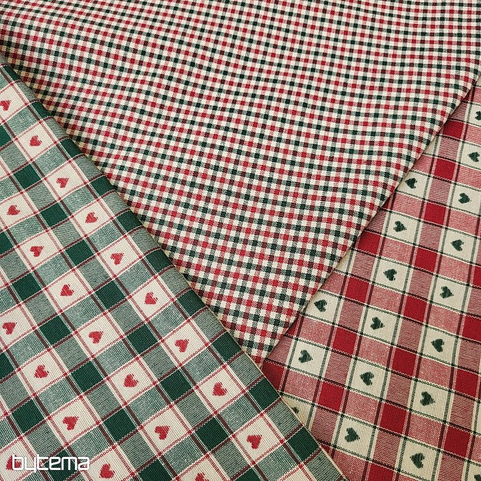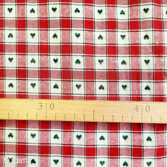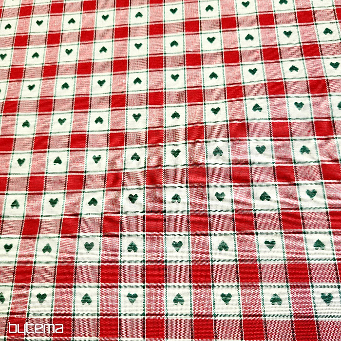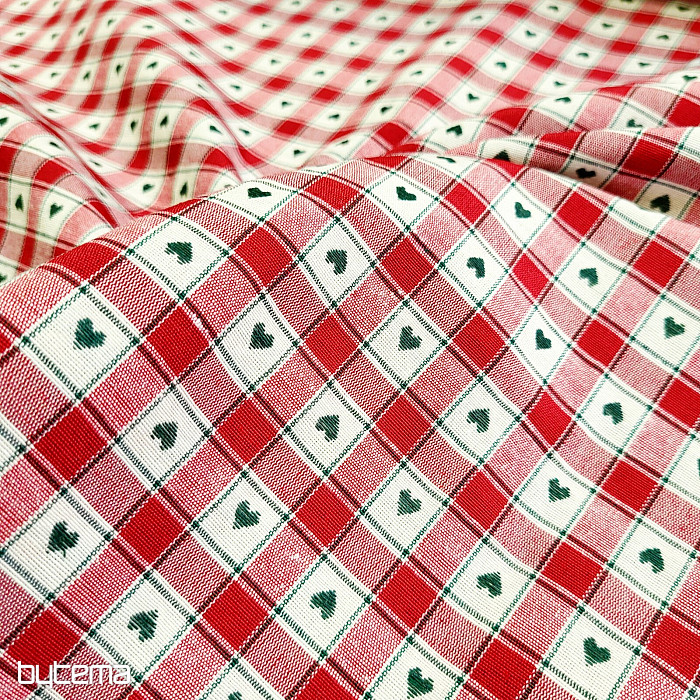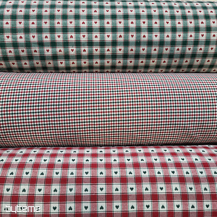 Un tissu décoratif à motifs damier et cœur est parfait pour les chalets de campagne et les cabanes en rondins.