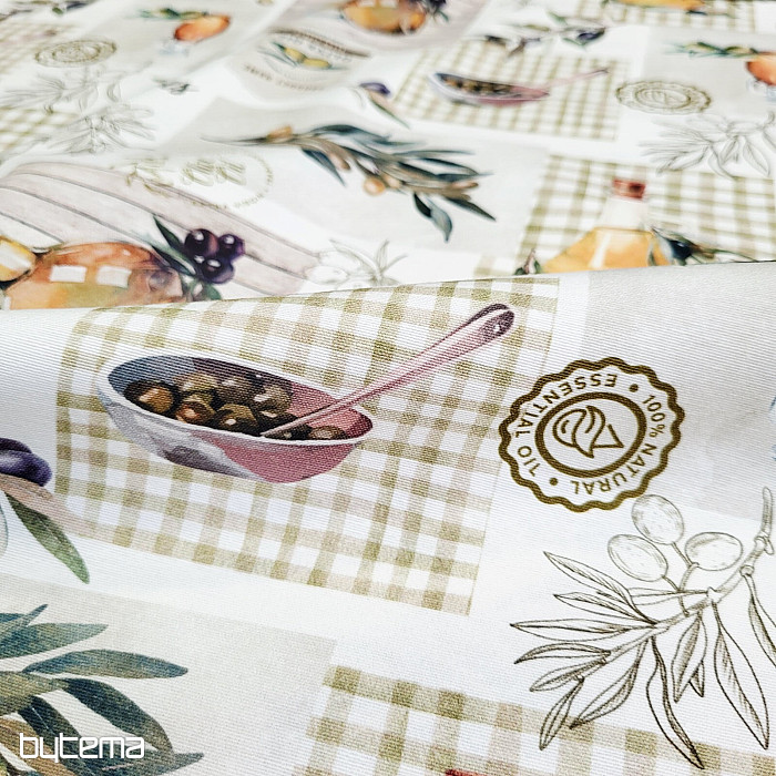 Le tissu décoratif à motif d'olives offre un style méditerranéen frais et convient parfaitement à la cuisine, à la salle à manger ou à la décoration estivale.