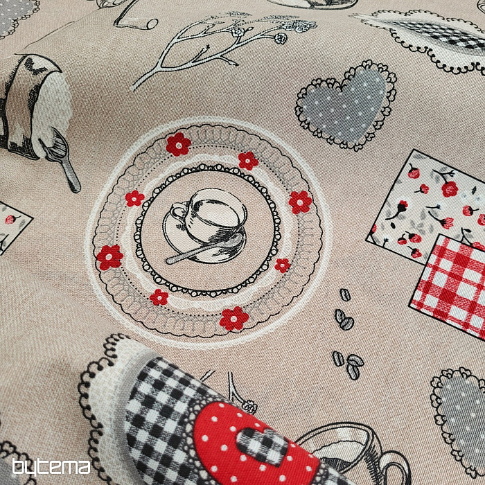 Ce tissu permet de confectionner des rideaux, des foulards et des nappes modernes. Le coussin complétera à merveille cette collection. Votre cuisine sera littéralement embaumée par l'arôme du café.