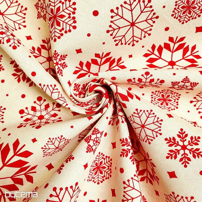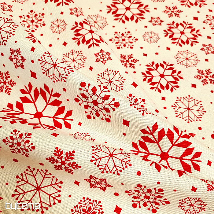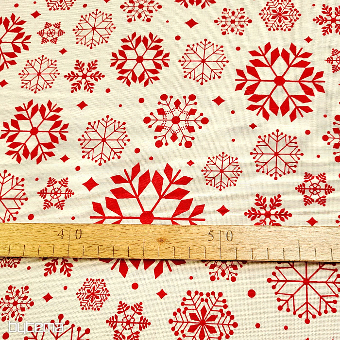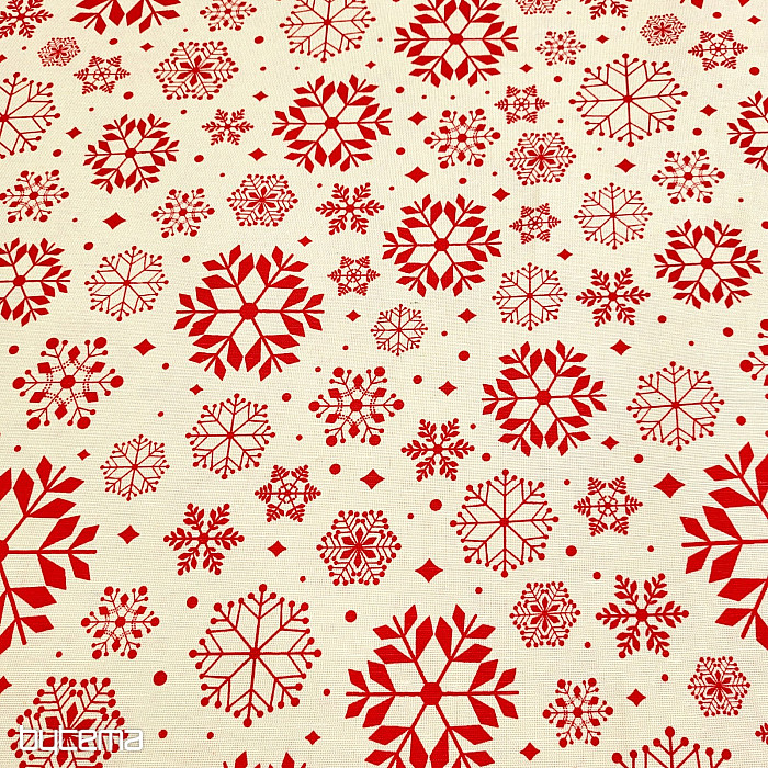 Le tissu décoratif de Noël rempli de flocons de neige rouges décorera votre cuisine pendant la période des fêtes.