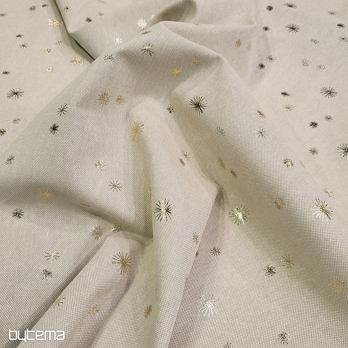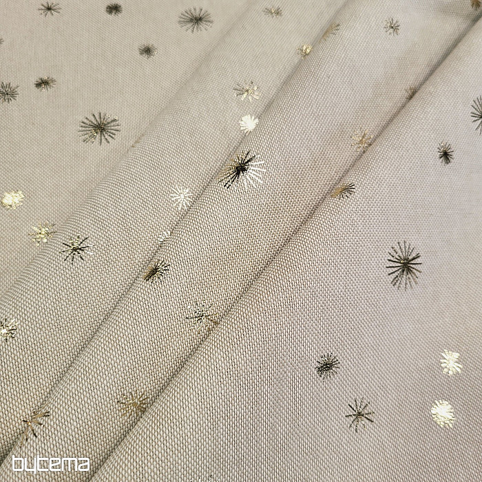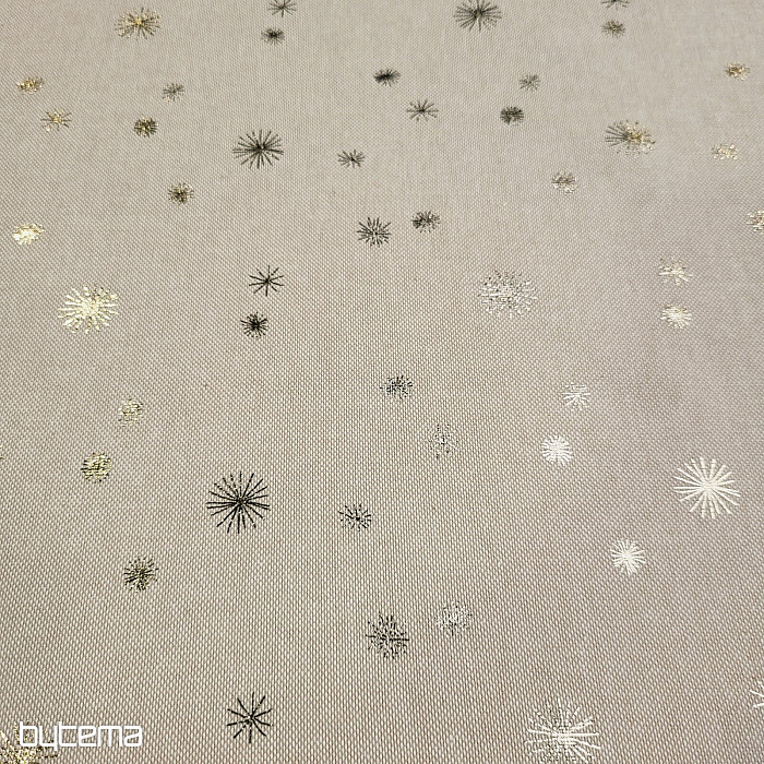 Un tissu en toile de coton plus épais, orné d'étoiles dorées de Noël ou de flocons de neige sur un fond texturé, est parfait pour les nappes, les sets de table ou les taies d'oreiller.