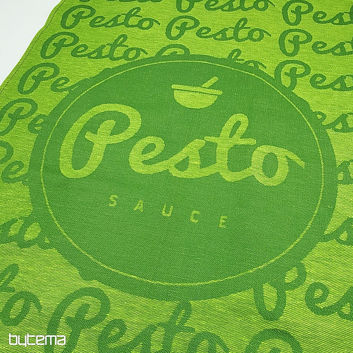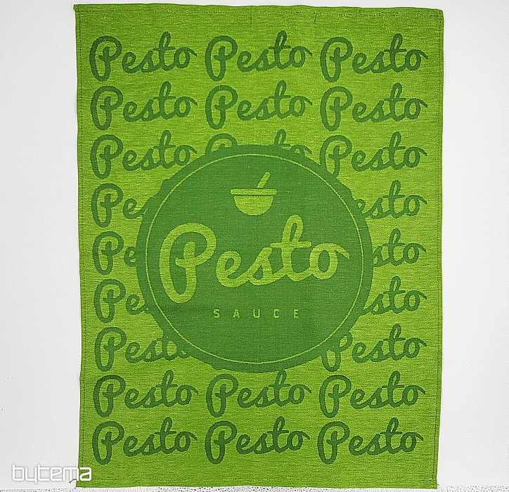 Magnifique torchon vert orné de l'inscription PESTO. Un cadeau idéal pour tous les cuisiniers.