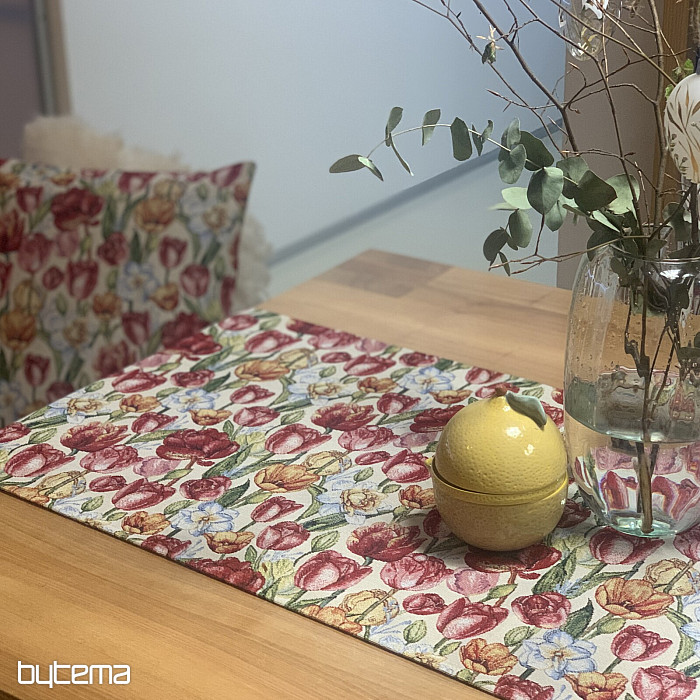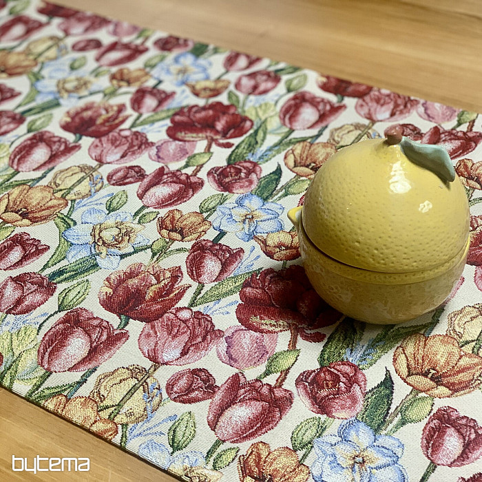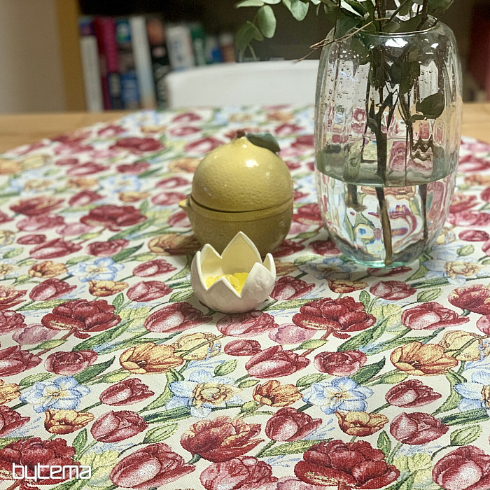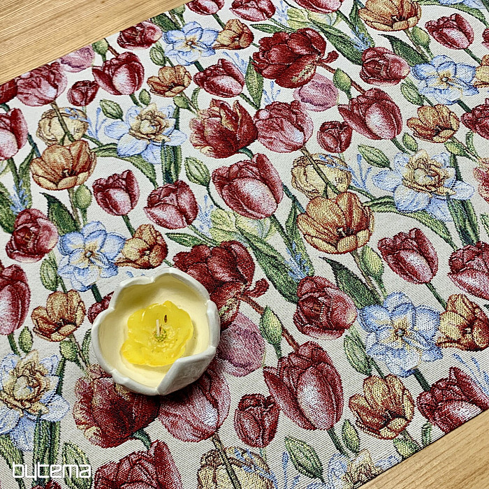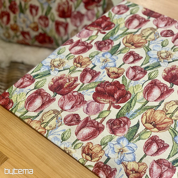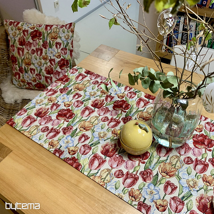 Une magnifique nappe et un foulard en tapisserie ornés de tulipes et de jonquilles printanières. Apportez une touche de couleur et de printemps à votre intérieur. Nous proposons également de jolies taies d'oreiller assorties.